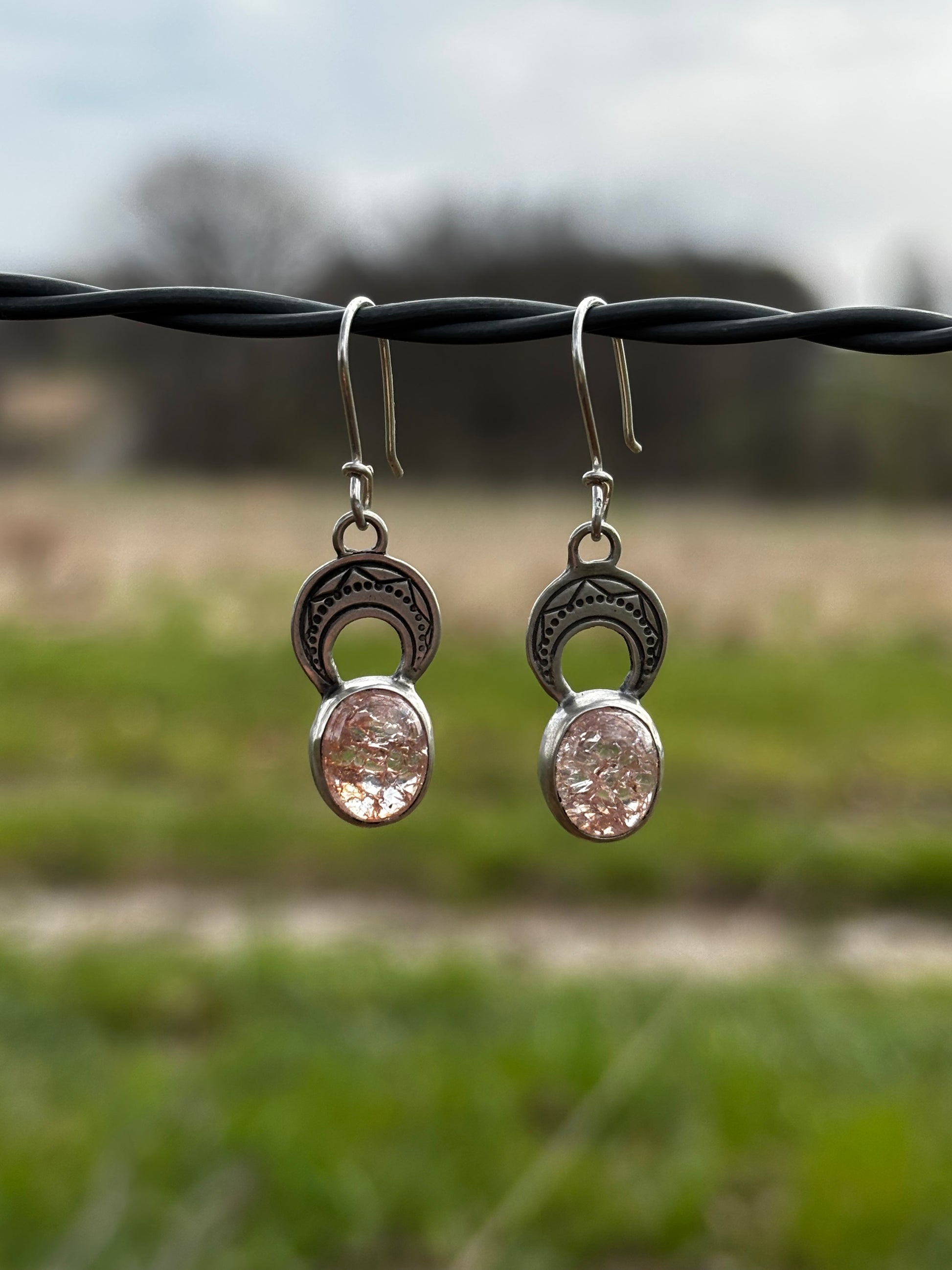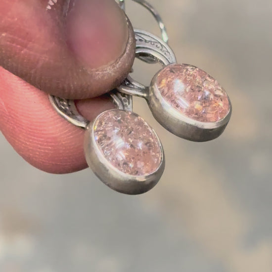 13cts of Oregon Sunstone beneath a crescent moon. These stones are vibrant and full of playful energy. Wear them when you want to feel youthful and adventurous. They sit sweetly and comfortably off the lobe on handmade sterling silver wires.